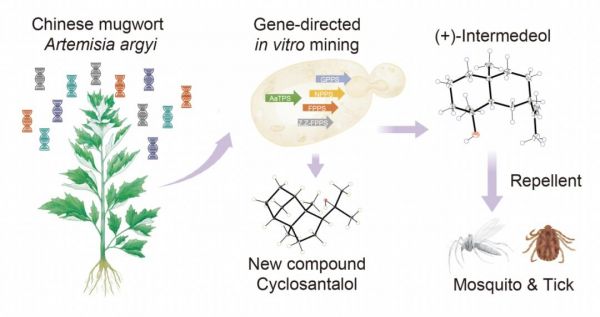 ▲ 揭示艾蒿中高效驱虫成分艾蒿醇,图片来源:“Gene-directed in vitro mining uncovers the insect-repellent constituent from mugwort (Artemisia argyi)”