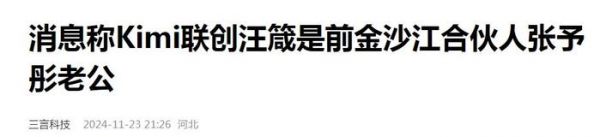 这个问题,《暗涌》的报道给出了答案:Kimi的联合创始人汪箴是张予彤的丈夫。