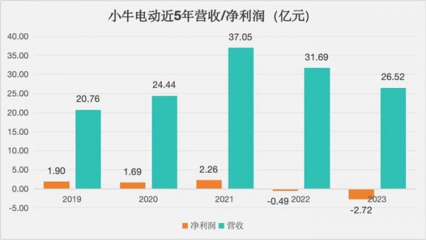 虽然从股权关系上,小牛电动与牛创新能源并没有关系,但造车项目不可避免地分散了创始人的精力,也给了竞争对手机会。正是在2022年至2023年,小牛电动的营收出现连续下滑,净利润也从2021年的盈利变为亏损。