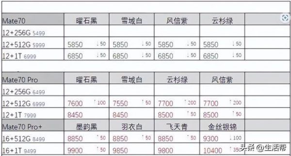 此次Mate 70系列起售价为5499元,涵盖四款机型,分别为 Mate 70、Mate 70Pro、Mate 70 Pro+和 Mate 70 RS非凡大师。