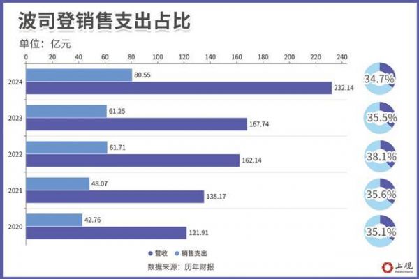 根据波司登的财报,其营销支出始终在30%以上,其中很大一部分是广告支出。波司登曾和杨幂、谷爱凌、易烊千玺等明星合作,抢占粉丝群体的流量;而鸭鸭官宣王一博为代言人当天,线上全渠道GMV超过了2亿。