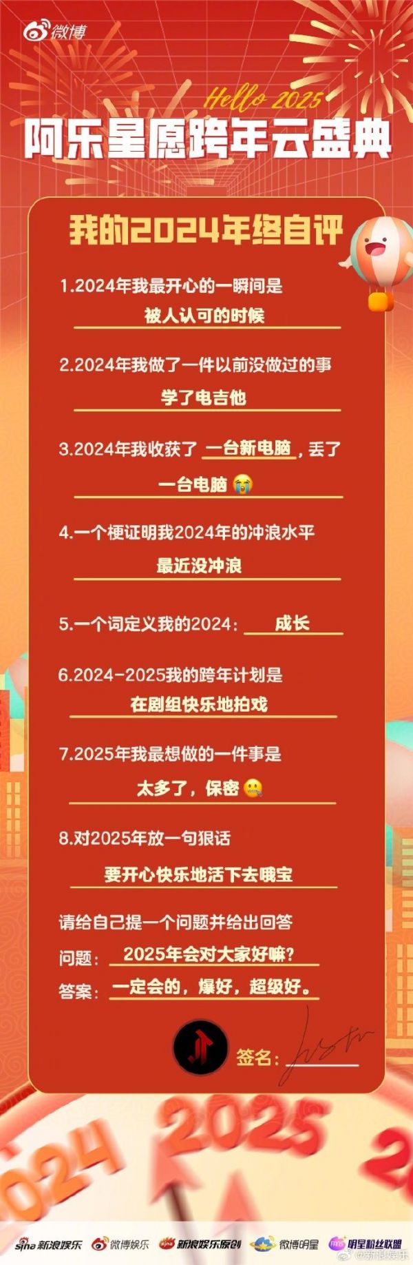 #黄明昊2025年最想做的事##黄明昊丢了一台电脑# 小贾@jjjustin0219 来做跨年值日生!2024最开心的瞬间是被认可的时候,去学了电吉他,丢了一台电脑......想知道他2025最想做的事?快戳下图揭秘~