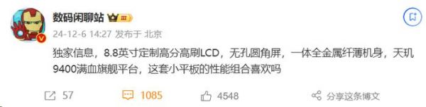 好在天无绝机之路,这两天我就看到爆料说,有某家厂商正在搞一款8.8英寸高性能平板。