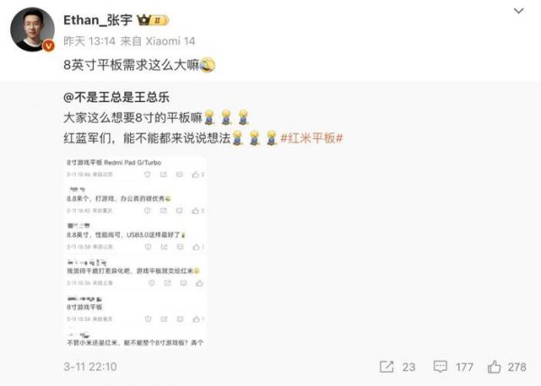 这款8.8英寸高性能平板,大概率是归属于REDMI旗下。