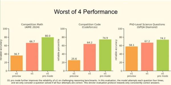 根据首场新品直播展示的内容,刚刚上线的完整版o1模型,相较于之前应用的对话大模型,其最大的“卖点”在于,它在回答用户提问时,采用了一种类似人类的内部思维链条,而不仅仅是简单的引用。因此,在回答具有强专业性的问题时,其准确度得到了显著提升。