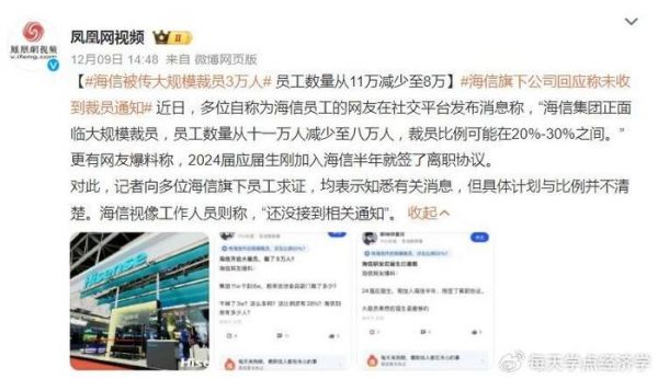 海信集团大裁员、11万人减少至8万?旗下公司回应:还没接到相关通知-大风新闻