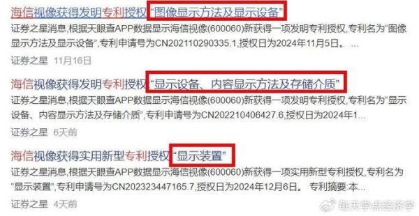 截至2024年5月,海信在激光显示领域累计申请专利数量达到了2598件,在三色激光显示专利数量上,更是高居全球第一;甚至就在最近的月余,海信视像还密集收获了多项发明专利及实用新型专利的授权;