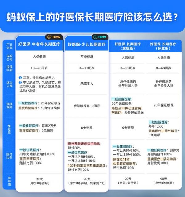 12月10日,互联网保险优选平台蚂蚁保宣布,旗下百万医疗险品牌“好医保”推出了专门针对中老年、慢病群体的“好医保·中老年长期医疗”(简称“好医保”中老年版)。此外,“好医保·少儿长期医疗”近期也进行了版本更新,优化了赔付比例、特药保障等产品责任。