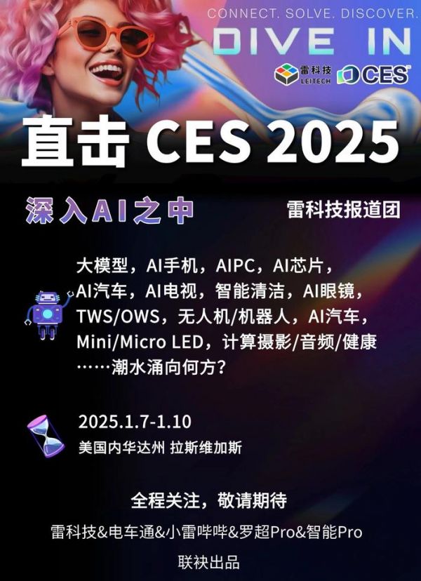 25年1月7日,CES(国际消费电子展) 2025 即将盛大开幕,雷科技报道团蓄势待发,即将飞赴美国·拉斯维加斯现场全程报道,敬请关注。
