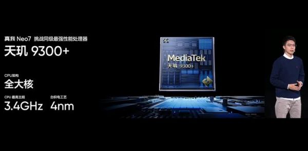 (图源:真我)性能方面,真我Neo7搭载了联发科天玑9300+处理器,这颗芯片采用台积电3nm工艺,包含4个Cortex-X4超大核,主频提升至3.4GHz,4个Cortex-A720大核,主频为2.0GHz,同时集成Immortalis-G720 MC12 GPU,结合高规格的内存和闪存配置,打下了坚实的硬件基础。