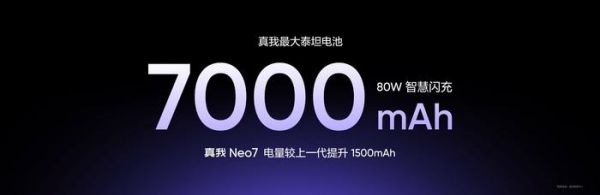 (图源:真我)续航一直是真我的拿手好戏,真我Neo7支持80W快充,相比以往的真我机型这个功率不是最高的,但日常快速补电足矣;更重要的是,这次电池容量增加到了7000mAh,这得益于真我对正负极材料、电解液、隔膜材料全面革新,这才实现了集超大容量、超轻薄、超耐久于一身的超高密度电池,