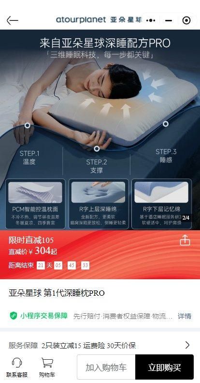 ▲图源:亚朵ATOUR这个设置很是精明。第一,相对于不办卡的客户,会员客户具有更高的粘性,也更舍得花钱,是精准客户;第二,客户领取增值服务的过程,相当于将店员推销产品这个行为合理化了,让客户觉得这是一项会员专享的高贵服务,同时极大增强了产品的存在感。在卖枕头这一赛道中,没有什么场景能比得上让你在酒店里用一晚的效果来得更直接了。当顾客拿到这个枕头,拖着疲惫的身躯,在舒适的环境里使用了一整晚之后,这层体验效果是立竿见影的。亚朵主打的深睡枕PRO并不便宜,在各大平台的售价为309元,今年7月发布的第2代深睡枕PRO更是来到了409元,快要赶上亚朵的日均房价( 三季度为 456 元 )了。目前累计销量也已突破80万件,销售额为3.27亿元。略高的价格是影响顾客入手的一方面原因,但好与不好,买与不买,大家心里还是会有杆秤的。认为好的,就买走。比如,某次出差在亚朵酒店试了几款枕头的李华(化名),觉得深睡枕确实比普通枕头舒服些,并用它一觉睡到天亮,于是立即给家人下单了。亚朵酒店的顾客就是亚朵枕头的第一批自来水,要是认准了,他们还会向身边的亲朋好友推荐。安利亚朵枕头的同时,没准还顺道安利了亚朵酒店,商业闭环就这样形成了。现在细想,酒店才是做家纺用品生意的“天选之子”啊。