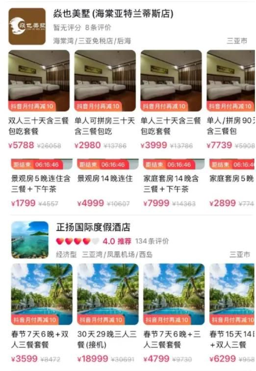 在抖音上随便一搜,海南各地高星酒店的“过冬”套餐相当多,且价格相当优惠。