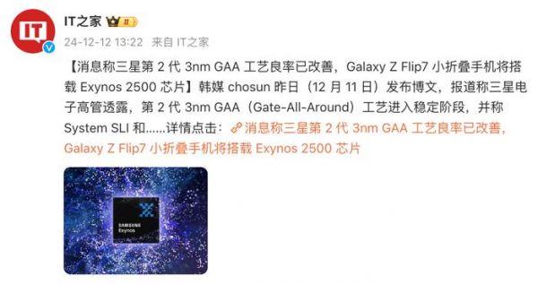 事实上,此前的消息中就曾提到过三星Galaxy Z Flip7搭载Exynos 2500 芯片的可能性。