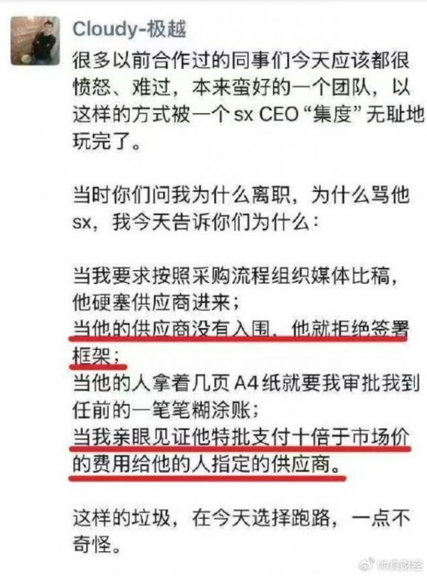 说实话,事情闹到这个地步,公司账上肯定是没钱了,员工的欠薪、社保、补偿,很难再拿到了,但一定要有人为这件事负责!不能创业失败了,一走了之,资金带到海外,债务留给国内。