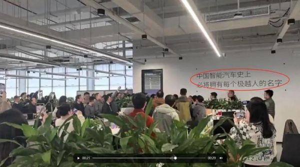 颇为讽刺的是,公司背景还悬挂着“中国智能汽车史上 必将拥有每个极越人的名字”的标语。