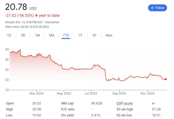 消息发布后,昨日英特尔收涨3.28%,报20.78美元/股。今年迄今为止,英特尔跌超56%。