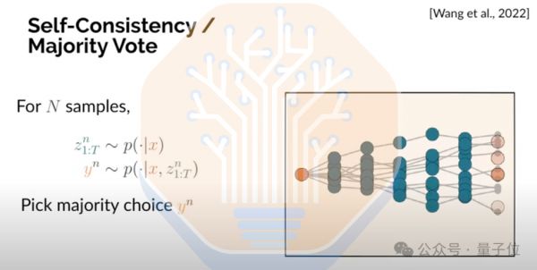 Self-Consistency / Majority Vote就是一种搜索方法。在这种方法中,只需在模型中多次运行提示词,产生多个响应,根据给定的样本数量,从响应中选出出现频率最高的作为正确答案。