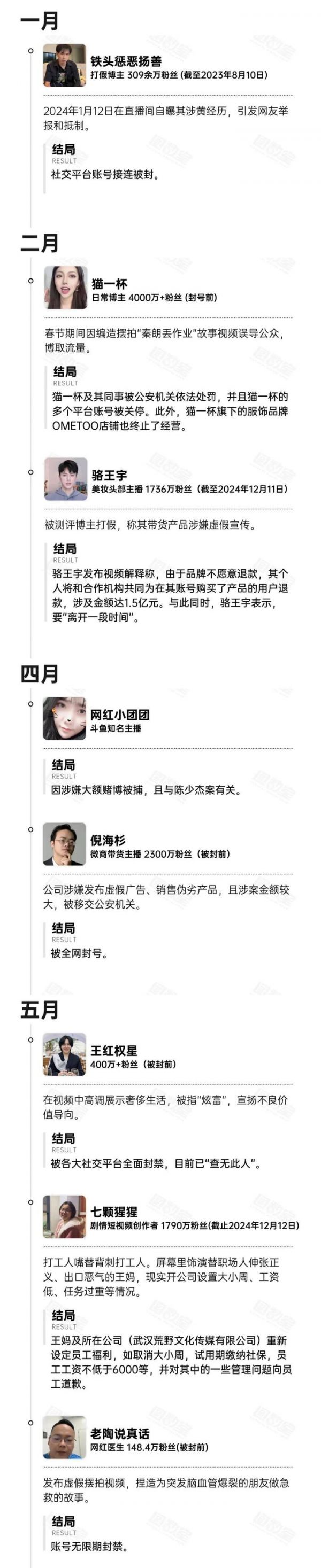 行业野蛮生长下,网红“塌房”现象已是司空见惯。但到了2024年,这一趋势似乎愈发明显。