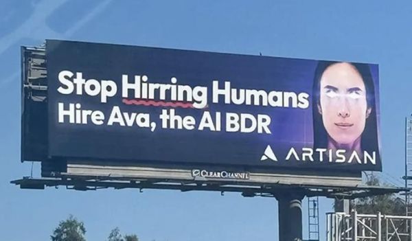 近日,在美国旧金山这个竞争激烈的科技圈,一场来自 AI 初创公司 Artisan 的广告活动掀起了轩然大波——这场宣传活动的标语相当直白且充满挑衅:“停止雇佣人类(Stop Hiring Humans)”。