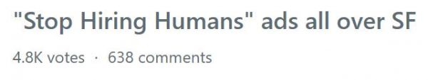 “停止雇佣人类”的广告,席卷旧金山!背后 CEO 放话:只有非科技行业的人会感到不满