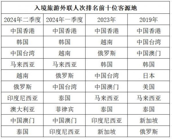 尽管2024年入境游人次正在快速向2019年同期水平逼近,但入境游人次恢复背后却是入境游客源出现颠覆式变化。