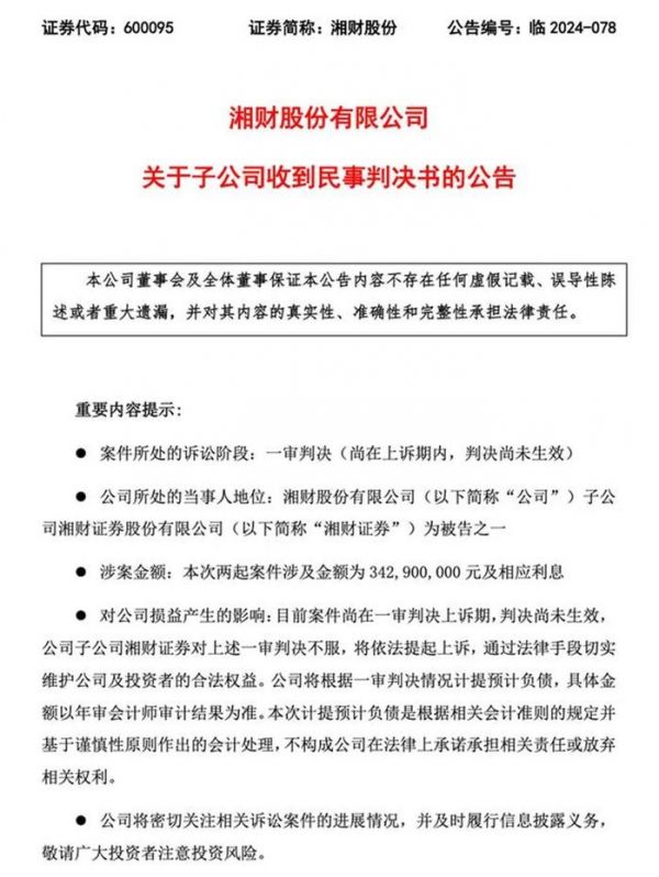 不过,湘财证券并未就此屈服,高呼要上诉。
