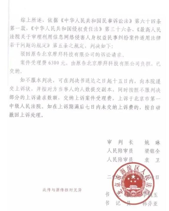 详见:《名誉侵权官司:摩拜单车败诉,磐石之心完胜!》