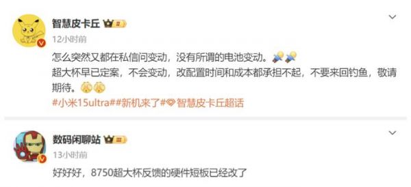 但另外一位博主称,没有所谓的电池变动,而且称小米15 Ultra早已定案,不会变动,改配置时间和成本都承担不起。