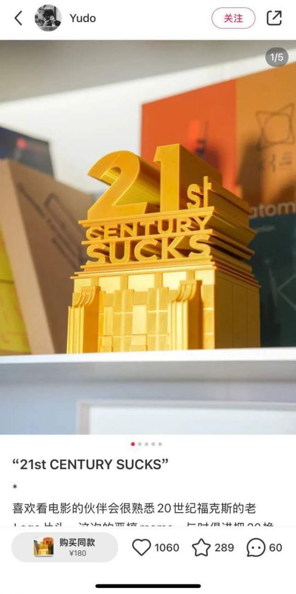 小红书风格的商品——用石膏手绘成的 “小大海”、3D 打印的 “21st CENTURY SUCKS”。