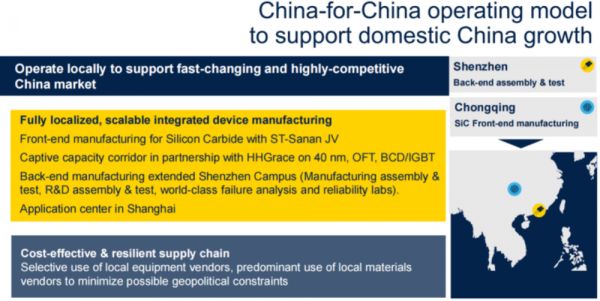 通过这样的合作,ST将会以上海为应用中心;深圳和重庆成为ST的主要制造基地,前者的聚焦后端组装与测试,后者重点为碳化硅前端制造。