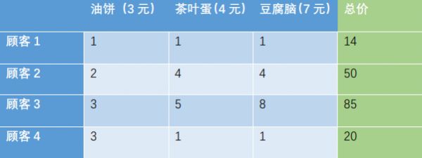 这一组单价表示油饼不要钱,茶叶蛋一颗X元,而买一碗豆腐脑不但不收钱,还会倒送X元的礼品券。这种情况在做买卖上听着不很合理,但在理论中,却是齐次线性方程组理论上存在的非零解。