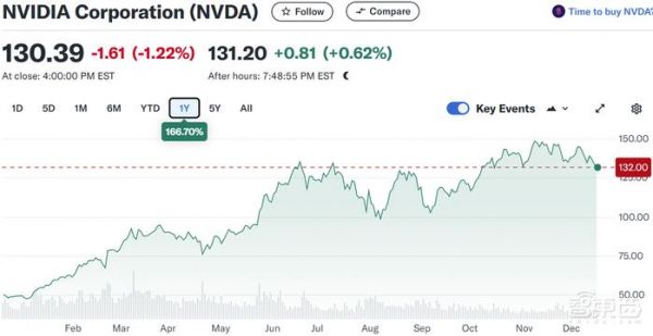 根据雅虎财经的数据,截至发稿,英伟达的股价年涨167%,最新市值为3.2万亿。