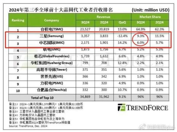 如果双方再继续一个高速增长,一个下滑,也许中芯很快就能超过三星,成全球第二名。
