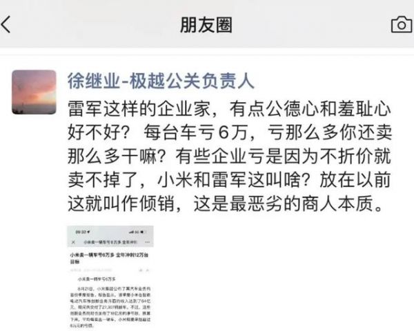 此前极越的公关负责人徐继业吐槽小米财报被全网狂喷的事情,大伙应该还有印象吧,也从侧面说明了极越营销团队的专业能力属实有些抽象。