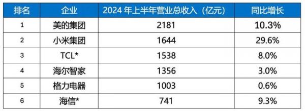 从今年第二季度财报来看,由TCL科技+TCL实业组成的TCL财报,营收落后于美的、小米集团,增速落后于美的、小米和海信。