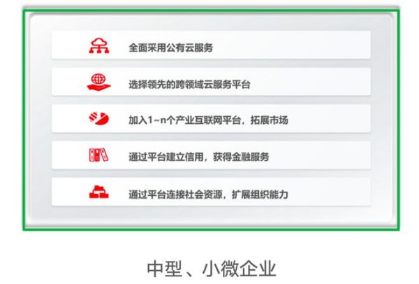 对中小型企业来讲,实现路径则是不同的。让一个中小企业快速实现数智化的方式是全面采用公有云服务,选择领先的企业数智化运营平台,直接使用平台上的数智化云服务就可以了。