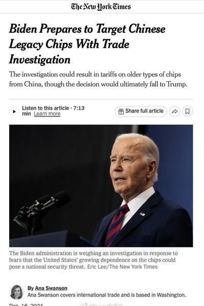 #做早饭时想# 【不必对拜登政府成熟制程芯片301调查有任何担心】
