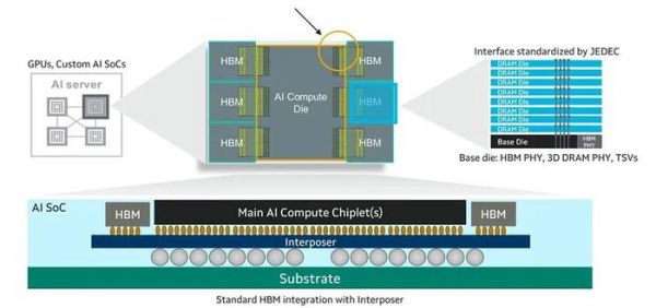 当定制HBM被引入其XPU AI芯片中时,它能访问33%以上的内存和25%以上的性能,同时提高能效。定制HBM计算架构通过序列化和加速其内部AI计算加速器硅片和HBM基片之间的I/O接口来增强XPU,以优化特定XPU设计的性能、功率、芯片尺寸和成本。