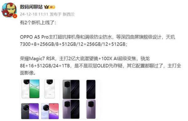 本来以为12月份就是中端新机的发布大潮,谁知道在12月18日,荣耀官方突然宣布新消息,称新机荣耀Magic7 RSR将在12月23日发布,这是荣耀最高端的旗舰产品,号称影像大王,年度王炸。