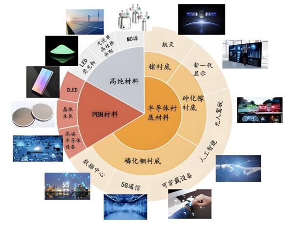 比如,手机、高铁和5G基站的氮化镓功率器件,光伏、显示屏上的氧化铟锡(ITO)透明导电涂层,红外、光纤、人造卫星上的锗等等。