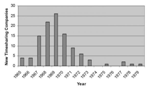 早在IT产业“史前”的1932年,蓝色巨人IBM就成立了服务局部门(SBD),在美国各大城市自建制表机“机房”,通过人力配送“互联网”传输打孔卡“数据”,为辐射范围内的中小企业提供算力服务,使其无需承担昂贵的硬件购置或租赁费用。尽管SBD营收从未超出过5%的贡献度,但这种伴随着一整代美国“新市民”与“新白领”共同成长起来的水平分工与服务付费生态,最终嵌入了美式管理资本主义的“基因编码”,从而在电子计算机时代也依然顺畅运转。以Tymshare公司为代表的多用户远程终端分时服务,同样曾在微型计算机问世前兴盛一时。