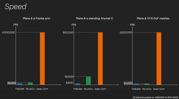 此外,许多仿真环境在物理特性和渲染效果方面与现实世界存在差距,导致训练出的机器人难以在现实世界中应用,形成“Sim2Real Gap”。Genesis的解决方式是提供一个能够模拟各种材料和物理现象的通用物理引擎,并采用真实感渲染系统,尽可能使仿真环境逼近真实世界,支持基于物理原理的触觉传感器模拟。类似英伟达的Isaac Sim或Isaac Gym等项目通过仿真技术,加速了机器人领域的发展。