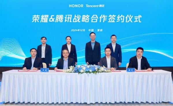 近日,荣耀与腾讯在深圳正式签署战略合作协议。双方将在云计算、商业生态及技术生态等多个领域深化合作,将荣耀在终端、AI、生态建设等方面的优势与腾讯在云计算、内容平台、游戏等方面的优势互补,实现共赢,共同提升用户体验。