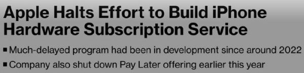 然而,据彭博社Mark Gurman的最新报道,苹果现已取消原计划推出的iPhone硬件订阅服务。