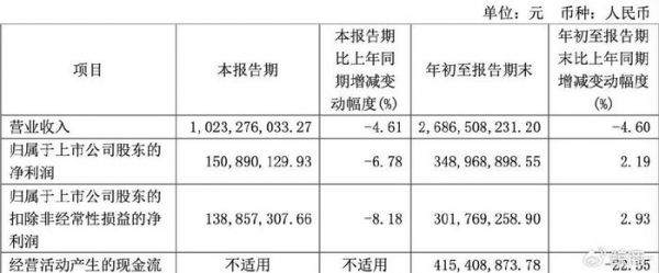 在今年前三季度,紫燕食品实现营收26.87亿元,同比下降4.6%,其中在今年第三季度,公司营收和归母净利润为10.23亿元和1.5亿元,分别同比下降4.61%和6.78%。