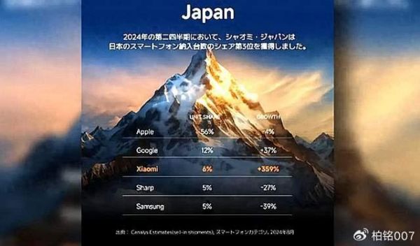 第三名为一家中国的手机品牌,这家中国手机品牌增长凶猛,出货量同比猛增359%,增速自然居于日本市场第一名,但是它的市场份额只有6%,只有谷歌的一半,接下来恐怕无法再维持如此高的增速,谷歌手机采用原生的安卓系统,中国手机也采用安卓系统的情况下,击败谷歌手机并不容易。