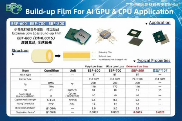 本次大会上,伊帕思在已有EBF(EPS Buil-up Film)系列膜材基础上,正式推出了EBF-800,该膜材的Df在0.0015(10GHz)左右,在这一关键参数上超越了味之素的ABF,打破了此前日本厂商的垄断,实现了全球领先。