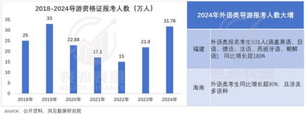 而入境游的红利期根本不等人,李依发现,今年导游报考人数大涨,尤其是外语导游,增幅直追入境游游客人数。