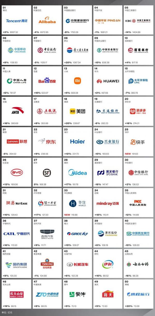 2024中国最佳品牌50强榜单,腾讯、阿里巴巴、建行排前三